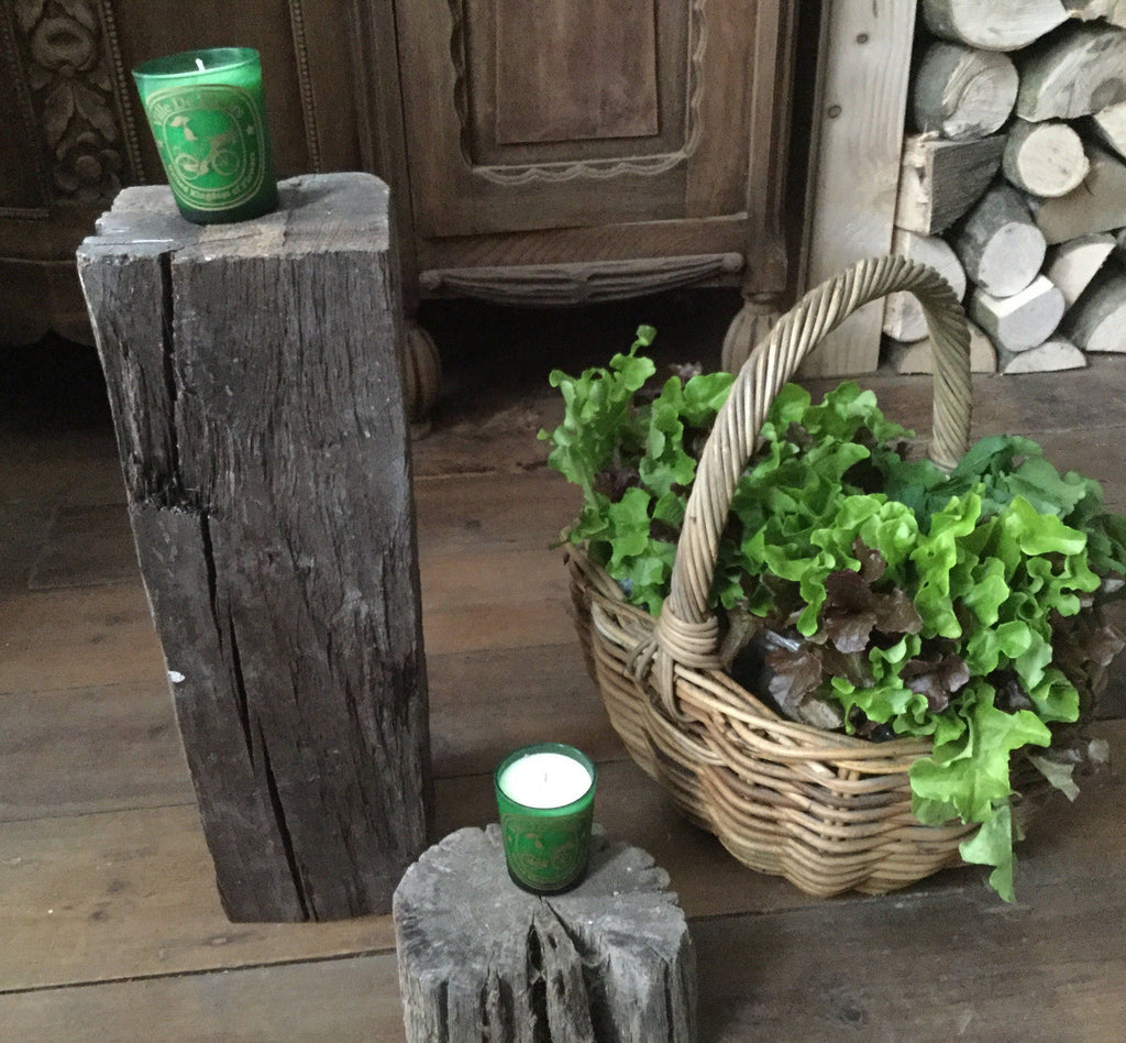 Inspired by a meditation and yoga retreats around the World, Serenity O’Clock is encased in a printed emerald green glass holder with a linen and cotton wick.